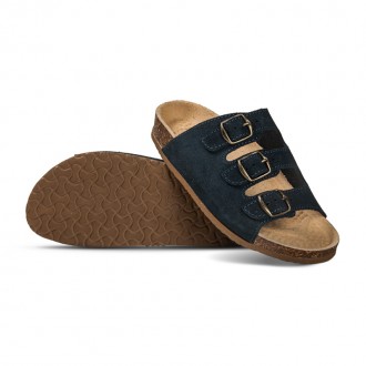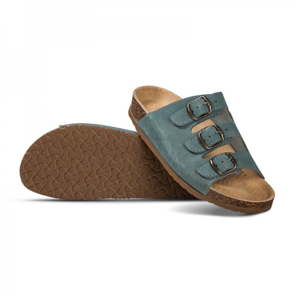 Klapki Skórzane z Trzema Paskami Beż/Morskie 06/3